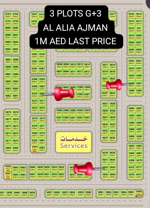 3 Residential/ Commercial Land Plots for sale in Al Hamid City (Al Alia) Ajman Land use Residential & Commercial (SRA) Plot size (each) 256 SQM (2755 SqFt) Price per plot AED1000000 (fixed, non - negotiable)