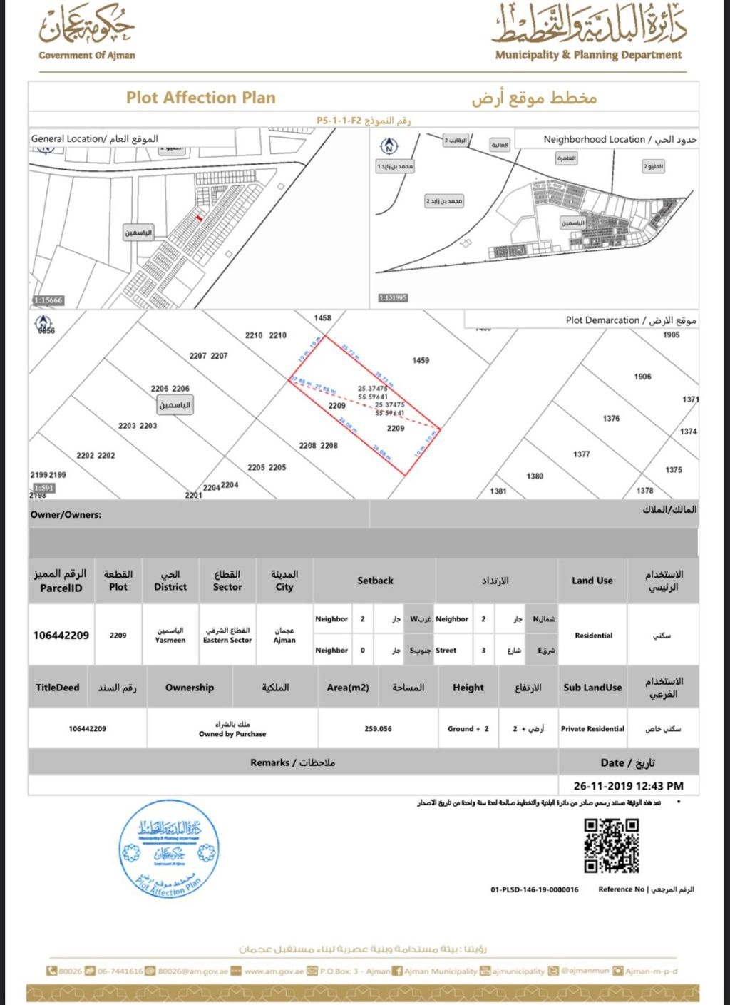 Land for sale,260 SQM, in Al Yasmin area. asking price 680000 (direct from owner)