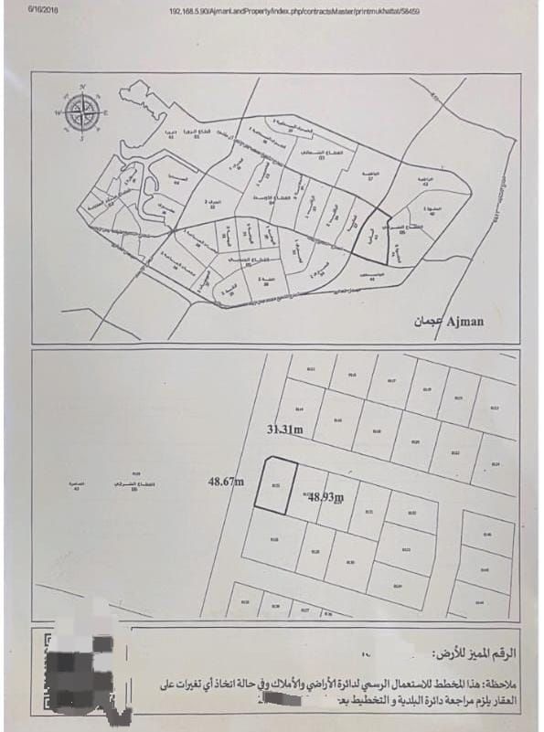 Land for sale in Al Amerah, Ajman Located behind McDonald\'s'16436.49 SqFt/ 1527 SQM G 16 plot with street and alley access Price AED7500000 Price per SqFt AED456 only