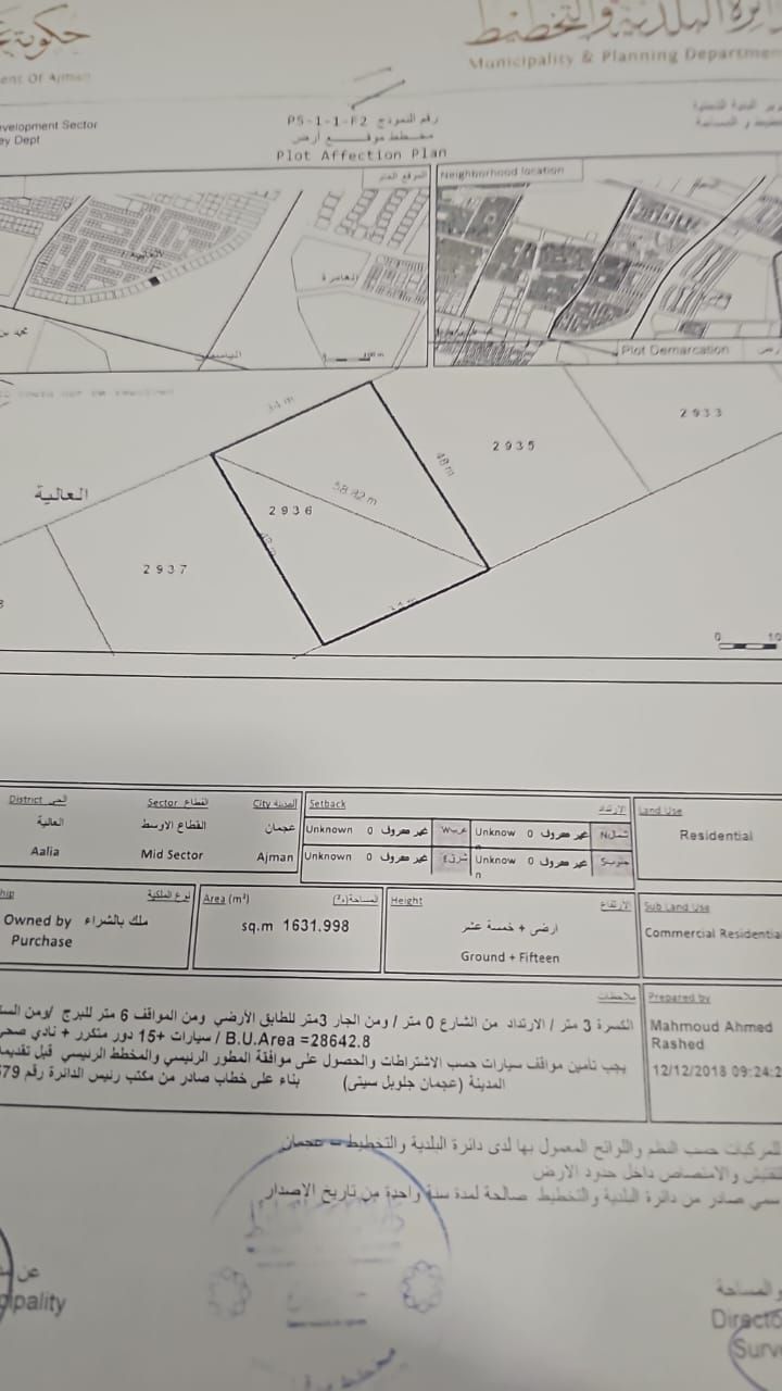 Al Aaliyah, Ajman 6 plots of land for towers Total area per plot 17549 SqFt Licensed Ground floor + 15 floors Price AED7000000 Agency fees apply Submit your best offer other options are available