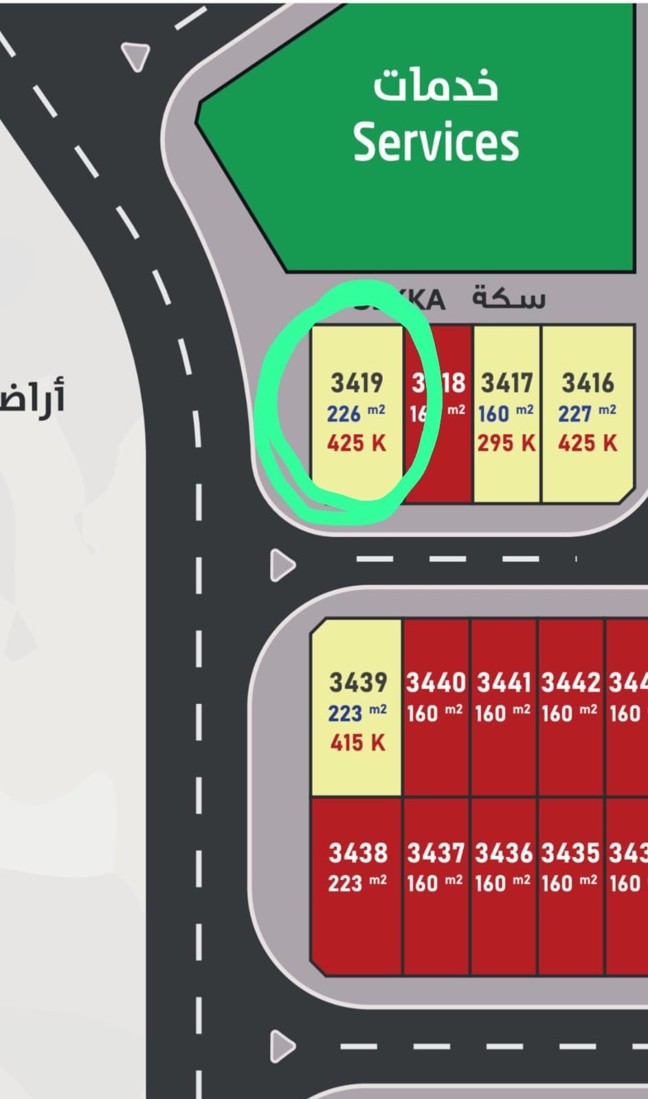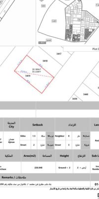 Residential land for villas in Al Helio 2, corner plot on 3 streets, area 2432 SqFt, permit for ground floor + 2 floors, asking price 640000 dirhams including registration fee