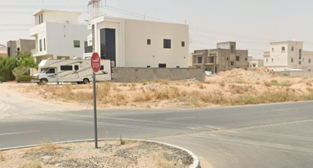 Residential investment land for villas in Al Yasmin, Ajman, corner plot on two streets - Area 359 SQM - Permit for ground floor + 1 floor - For more details, contact us