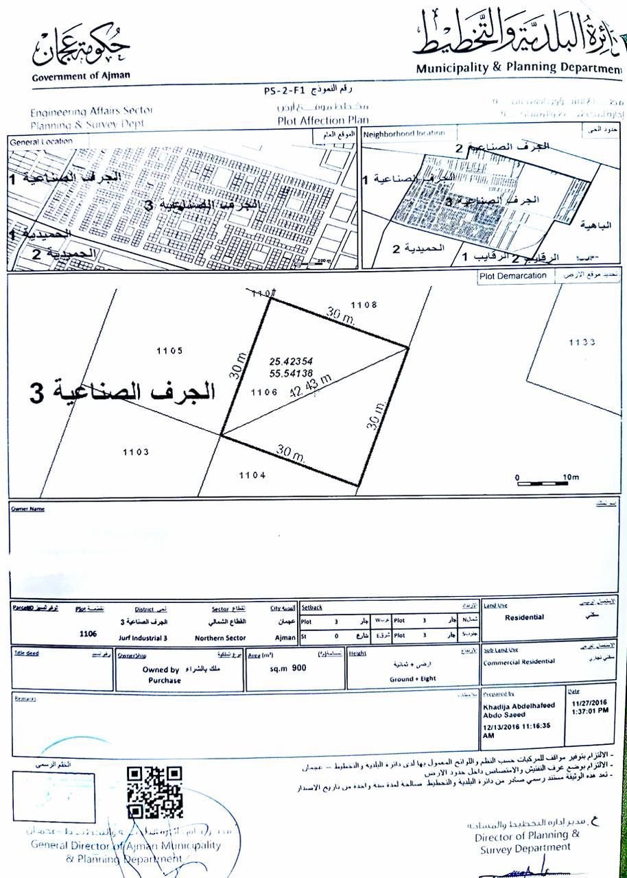 أرض سكني تجاري للبيع في عجمان الصناعية 3 تصريح بناء أرضي و8