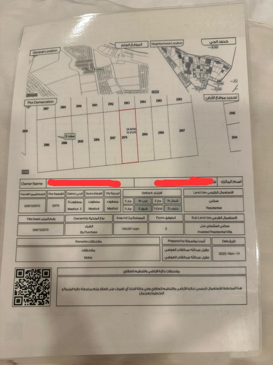 للبيع أرض في إمارة عجمان مصفوت 3 مساحة الأرض 160 متر واجه 8*20 طول لا يتواصل غير الجاد رجاء