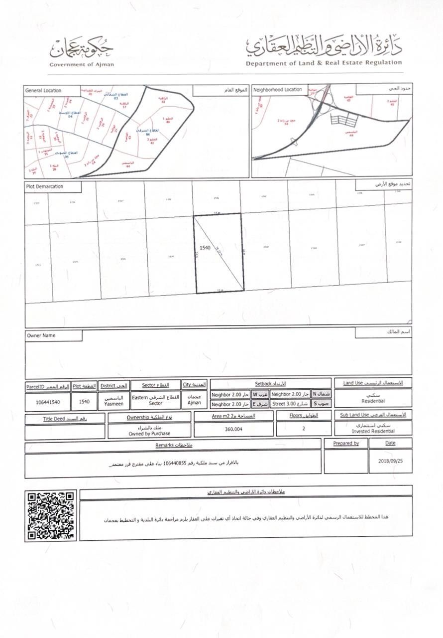 Available 2 Plot for sales Al Yasmeen main road SqFt area 3875 Residential Ach Plot price 1 million