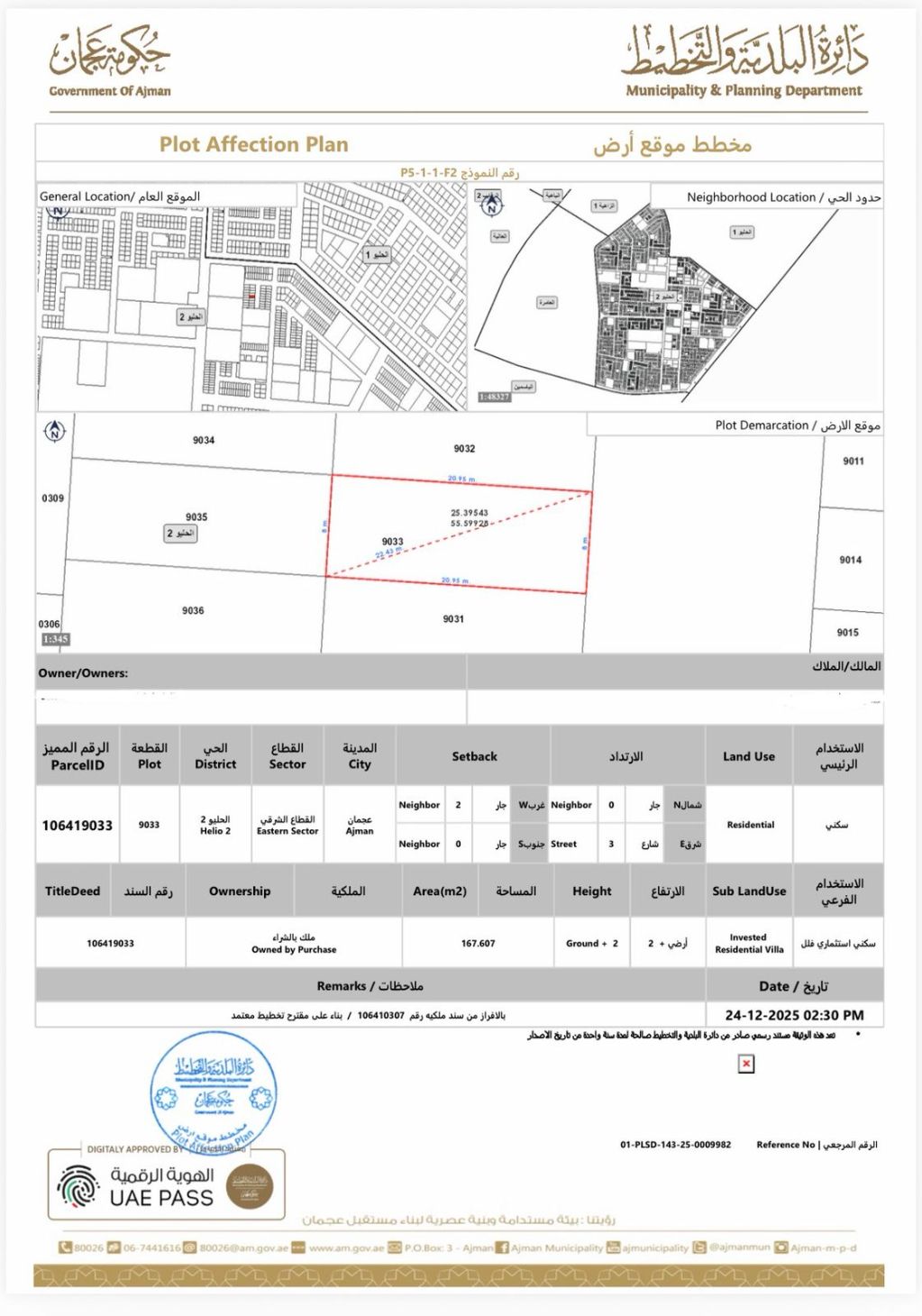 For sale Two Adjacent Townhouse Plots - Al Jazairy Farm Project Al Helio 2 - Ajman A unique investment opportunity to own two adjacent townhouse plots in the highly sought - after Al Jazairy Farm Project, located in Al Helio 2 - Ajman. These plots are perfect for investors or families looking to build their own townhouse with modern and customized designs, benefiting from a strategic location and
