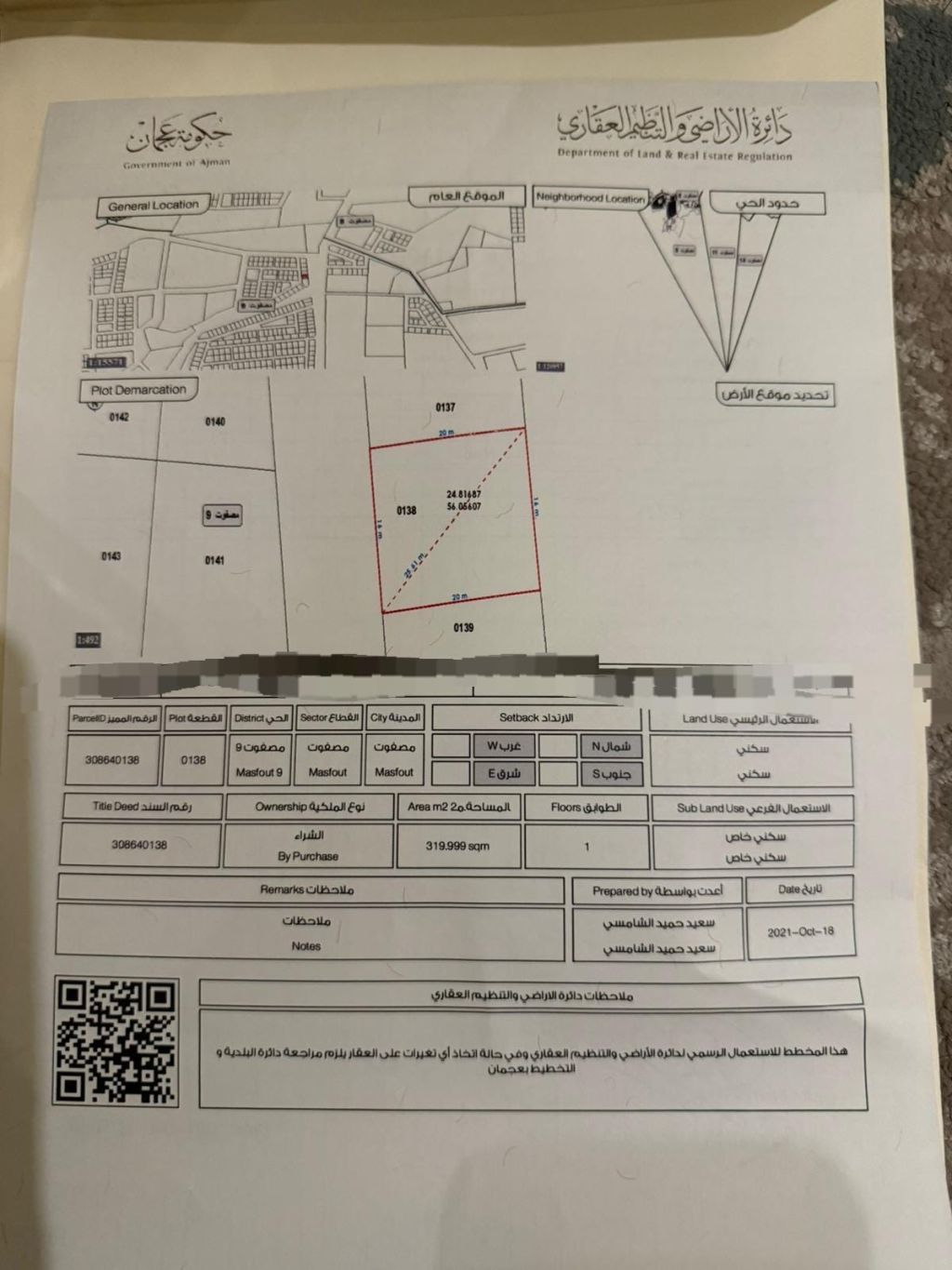 320 متر مربع 3444 قدم مربع تصريح سكني مصفوت حوض 9 مطلوب 190 ألف درهم