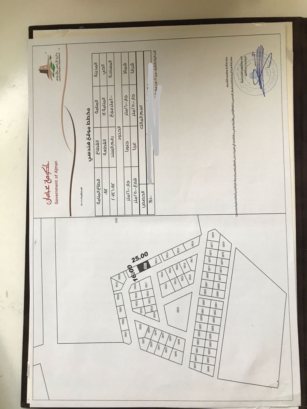 Land for sale in Ajman in Manama area Basin 14 Land area 4268 square feet Close to the street and the farm, a ground villa permit + 1 asking price 190 thousand