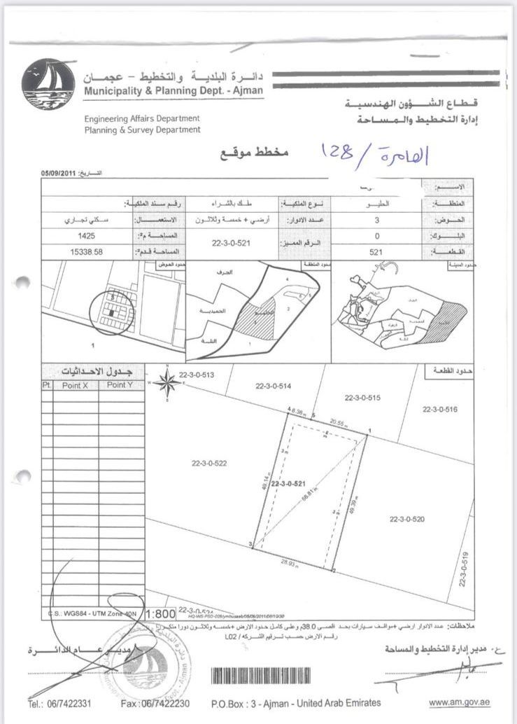 أرض متاحة، تقع على بعد طابقين من الطريق الرئيسي في منطقة العامرة. مساحة الأرض 15338 قدم مربع مناسبة للاستخدام التجاري والسكني طابق أرضي + 35 طابقا معتمد موقع متميز للغاية، ثاني أرض من الشارع الرئيسي. السعر 6.5 مليون درهم (غير قابل للتفاوض) أرض تمليك حر، يمكن بيع الشقق والمحلات التجارية عليها)