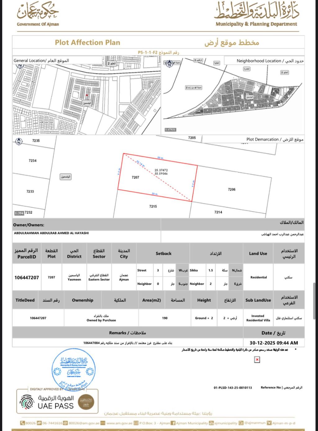 Only 500000 AED FOR A LIMITTED TIME Townhouse Plots for sale - Al Yasmin, Ajman Prime investment opportunity in one of Ajman’s most sought - after locations. Townhouse residential plots available for sale in Al Yasmin Area, located in a very prime location close to Ajman Downtown, and surrounded by all essential services and facilities. Plot Details Plot Size 1722 SqFt (160 SQM) Usage Townhouse