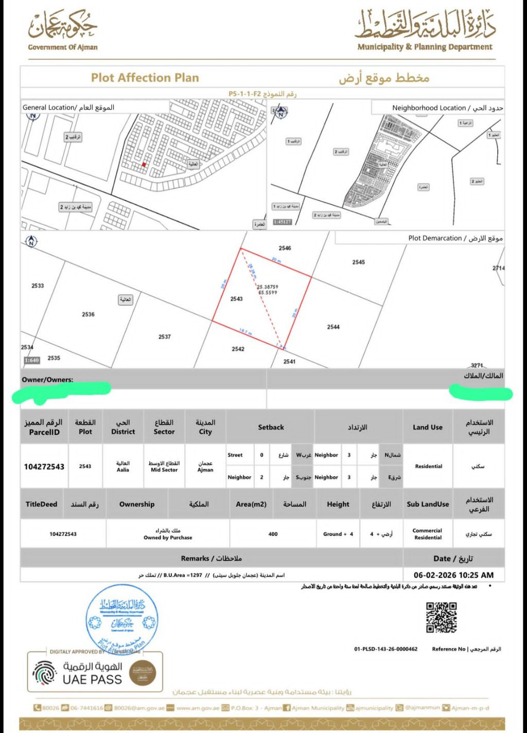 Residential/ commercial land for sale in Ajman, Al Aaliyah Global, 4300 SqFt, freehold, apartments for sale, G 4 permit