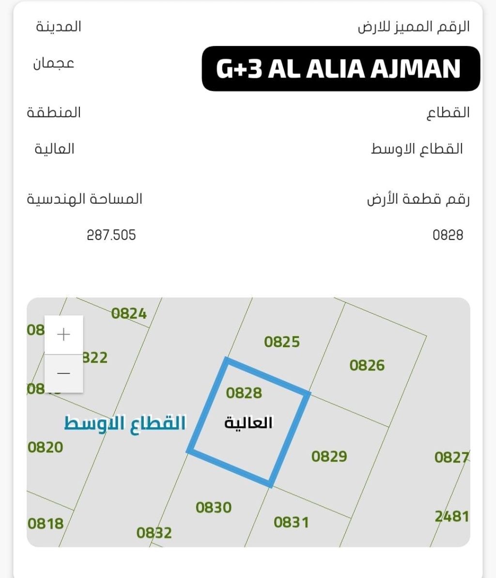 أرض سكني تجاري المساحة الكبيرة G 3 العاليا عجمان خلف منطقة الخدمات المساحة 287 متر/ 3089 قدم السعر 1320000