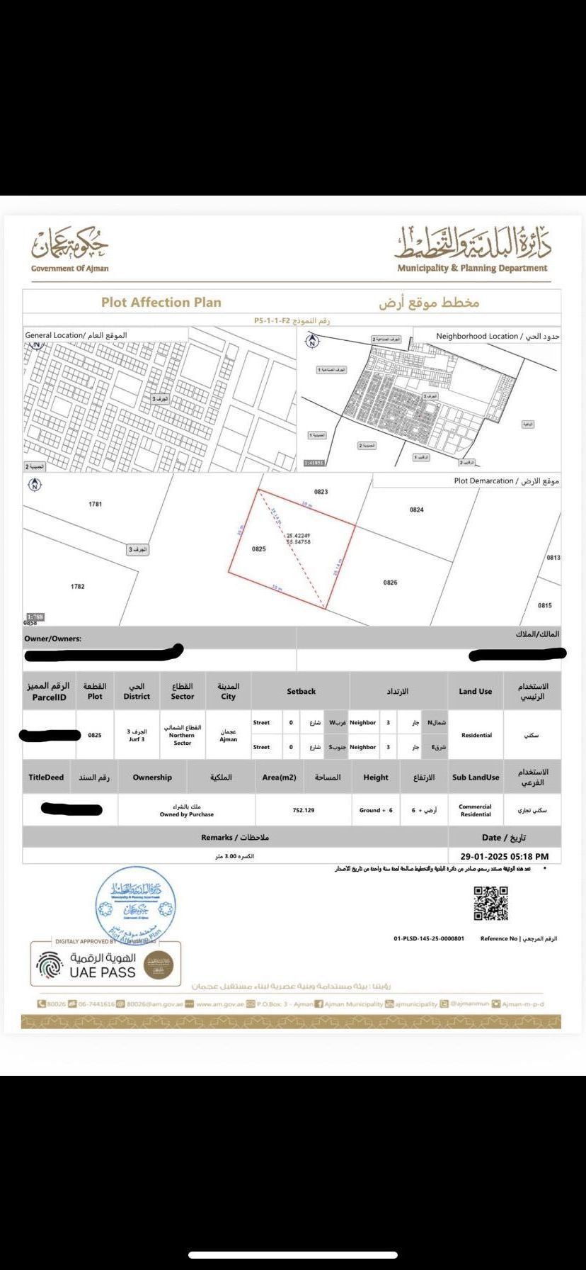 للبيع أرض في الجرف 3 - عجمان أرض سكني تجاري الأرض زاوية على شارعين قار تصريح أرضي + 6 مساحة 752 متر 8094 قدم تملك حر لجميع الجنسيات السعر 3250000 درهم وقابل للتفاوض