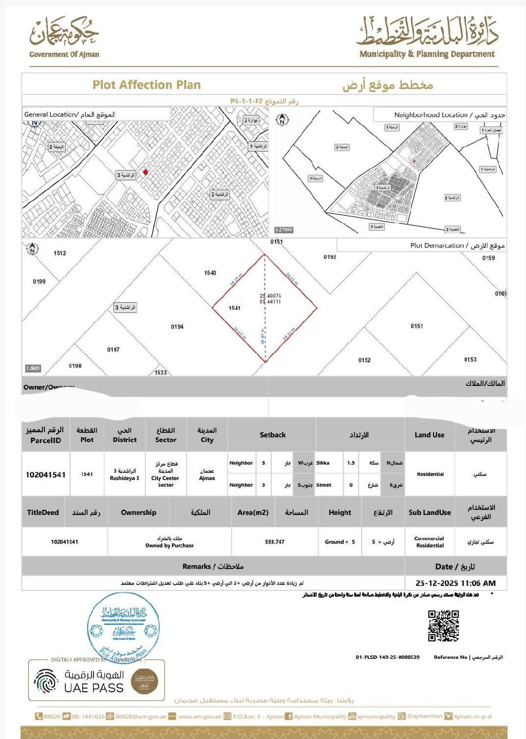 Land for sale in the alrashdya 3 Residential, commercial (Ground + 5) The land area is 6400 feet 1800000 is required