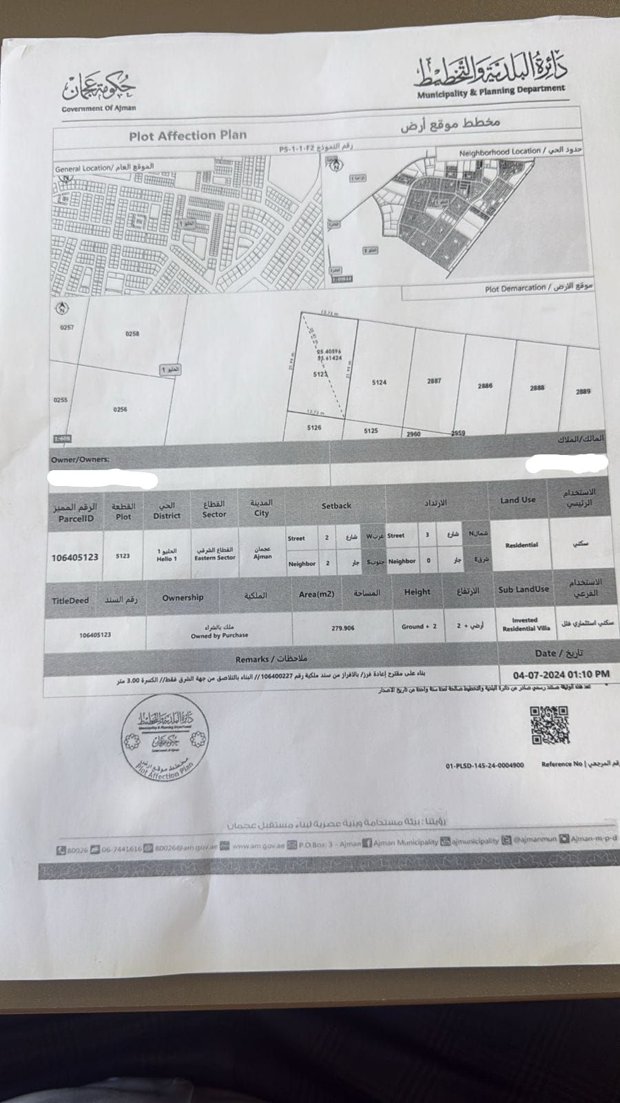 Corner plot for sale in Al Helio 1 Prime location (corner) offering optimal space and utilization Area 279 SQM Building permit Ground + 2 floors Price AED720000 Excluding registration fees Suitable for building a residential villa or long - term investment Excellent opportunity in a vibrant and developing area