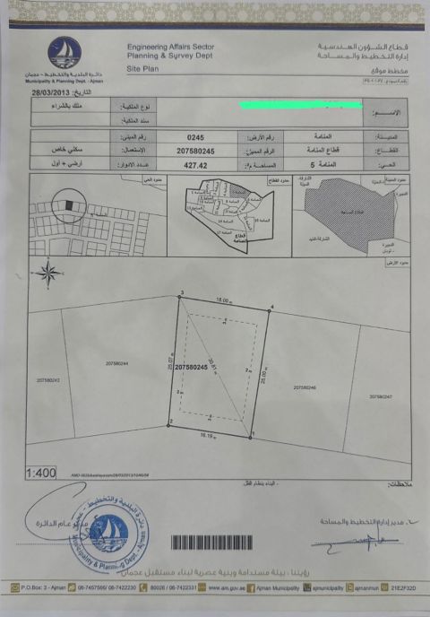 Land for sale - Al Manama, Block 5 (Ajman) Quiet and Prime Location, Ideal for Residential and Investment Land Details Permit Private Residential - Ground + First Floor Area 427 SQM Suitable for Building a Residential Villa asking price AED170000 Only Contact Excellent Opportunity to Own Land at a Great Price in Al Manama