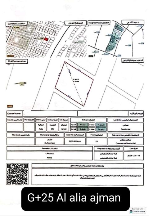 For sale Prime Res/ Commercial Plot - Al Alia, Ajman Strategic location near Sheikh Mohammed Bin Zayed City Rd & Tiger Project - Plot 3600m (38750 SqFt) Allowed BUA 860000 SqFt - G 25 Res + 2 Service + 6 Parking floors - Freehold - Off - plan sales allowed Price AED12800000 Clear title & all docs ready
