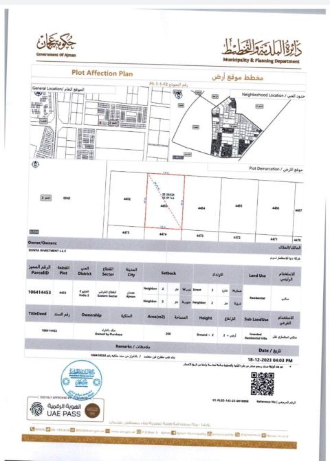قطعة أرض مميزه سكني تجاري للبيع عجمان، ليوارة 1 G 3 مساحة 3182.6 السعر مليون درهم