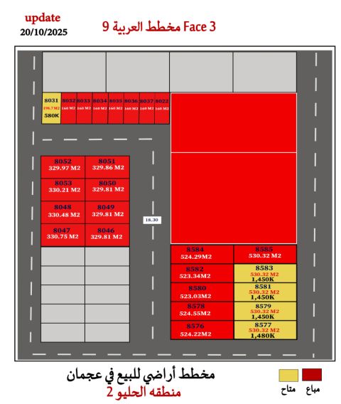 For sale, large plots of land in Al Yasmeen, in installments. 6 - month installments are available. 40% down payment and the rest over 8 months, including two registration fees. Contact us via WhatsApp. Contact us at