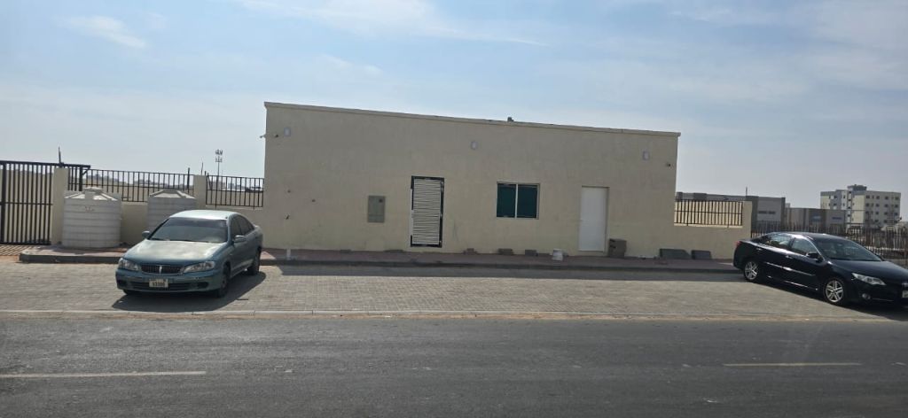 For rent Walled Land (Enclosed Plot) in Al Jarf Industrial Area 3 - Land Area 6400 SQM - Includes Office, Storage Room, Kitchen, Bathroom, and Security Cameras - rent 240000 SAR Contact via
