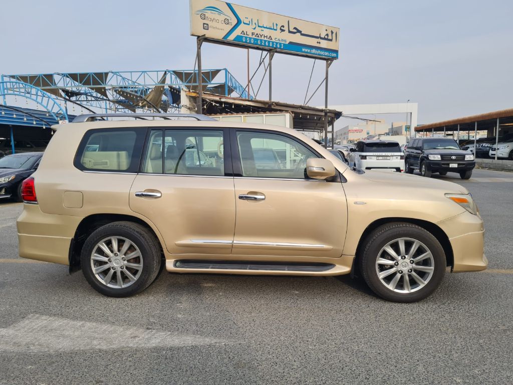 Lexus LX570 S V8 5.7L Full Option 2010 model. Price 72,000 UAE Dirhams. Odometer 378,000 km. Gulf specifications. Color: Gold / Beige interior. Car features: Anti-lock braking system, aluminum wheels, AUX audio input, Bluetooth system, CD player, climate control, cruise control, keyless entry, leather seats, navigation system, parking sensors, power locks, power mirrors, power seats, power steering.