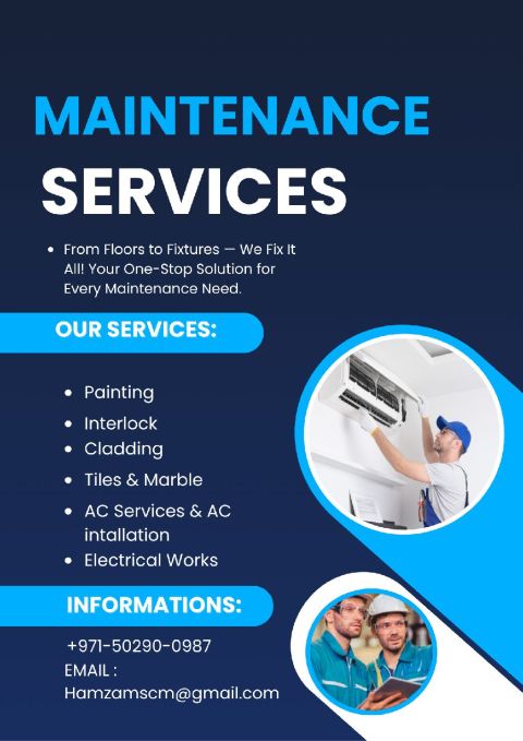 أنا فني هندسة لتوريد وتركيب وتصليح وصيانة جميع أنواع اجهزة التكييف وشغل تجهيزات تكييف وسباكه وكهرباء موجود داخل دولة الامارات منذ ثمانيه سنوات مكاني في البرشاء 3 N1