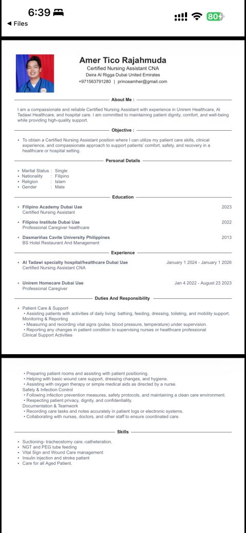 Hello am a nurse assistance and a care giver with over 2 years of experience, with a certified nursing assistance and care giver certificate in the UAE, looking for a job in any REPUTABLE clinic or a hospital where I can utilize my skills and years of experience in other to enhance the growth of the company, thanks
