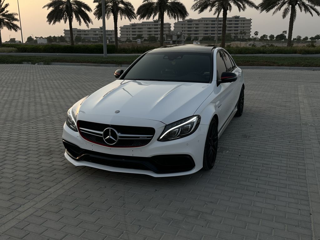 مرسيدس C63 AMG - 2016 - مواصفات خليجية - ماشي 247,995 كم - اللون الخارجي أبيض وأسود مع لمسات رياضية - الداخلية جلد فاخر بتطريز أحمر مع مقاعد رياضية AMG - محرك V8 تيربو مزدوج بقوة وأداء استثنائي - سقف بانوراما + كربون فايبر داخلية
