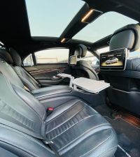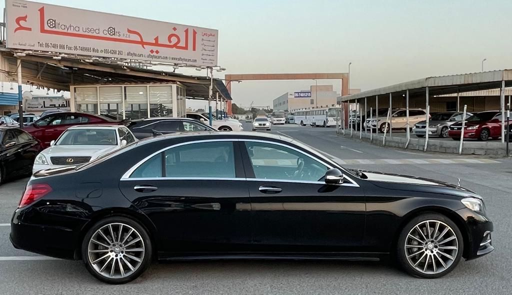 Mercedes-Benz S500 V8 4.7L full specifications, model 2014. The car is very clean and accident-free (agency condition). Price: 130,000 AED. Odometer: 95,000 km. Gulf specifications. Color: Black exterior / Black interior. Features: Anti-lock braking system, safety system, aluminum wheels, AUX/Audio input, Bluetooth system, CD player, climate control, cruise control, fog lights, keyless entry, leather seats, stability system.