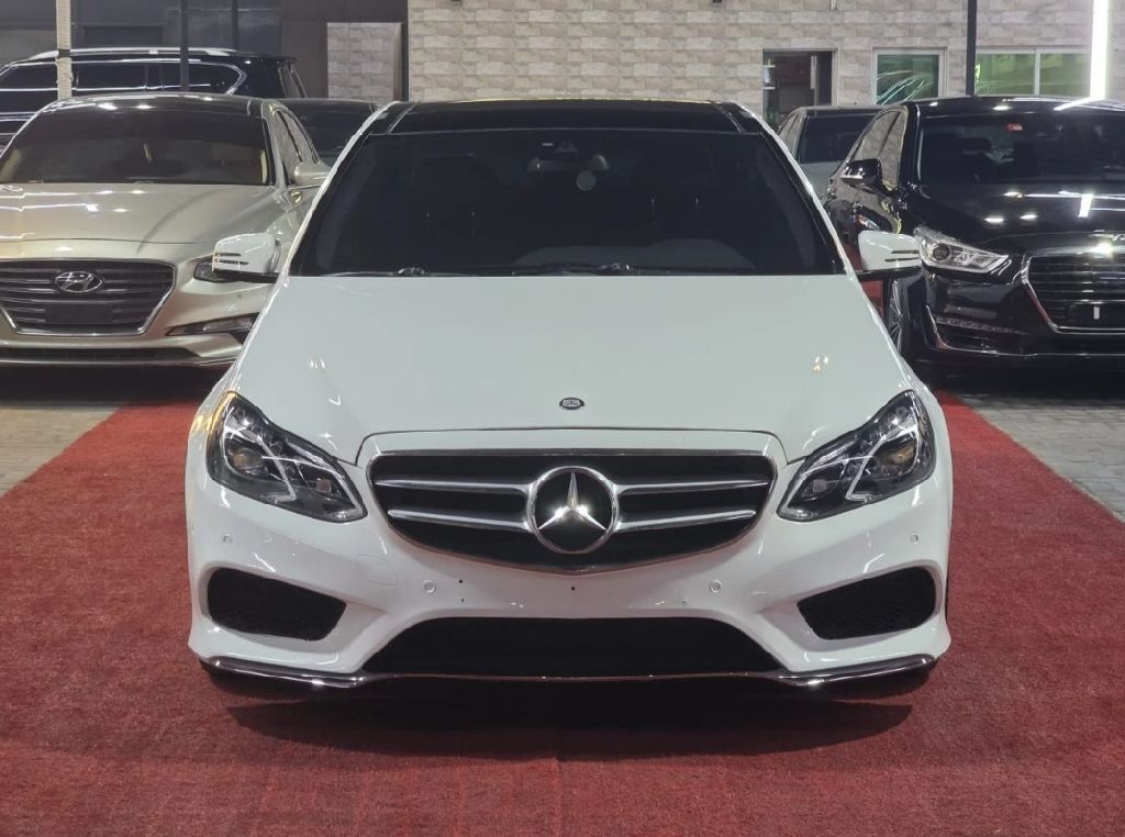 Mercedes-Benz E300 EMC - Model 2014, GCC specifications. V6 engine with 3.5L capacity, 7-speed automatic transmission. The Mercedes E300 is in excellent condition and has undergone all periodic maintenance, requiring no additional expenses. An elegant, comfortable car with strong and smooth performance as expected from Mercedes. Features include panoramic sunroof, fingerprint start, 360-degree cameras + front and rear sensors, electric seats with memory, driving modes (Eco/Sport), LED lights, anti-lock braking system + blind spot warning.