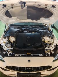 Mercedes-Benz C-Class C300 2.0L V4 Turbo Hybrid, model 2022. Price: 145,000. Odometer: 88,000 km. Specifications: Korean version. Color: White exterior / Black interior. Engine and performance: 4-cylinder turbo + mild hybrid engine, 2.0L capacity, approximately 255 horsepower. Power bank capacity: 10,500 mAh (134.4Wh). Torque: approximately 400 Newton-meters. Transmission: 9-speed automatic.