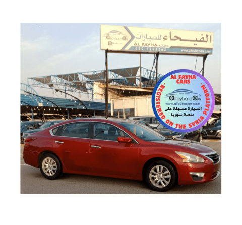 Nissan Altima S 4 - cylinder 2.5L model 2015. Price 20000 UAE Dirhams. Odometer 111000 miles. American specifications. Red exterior/ Black interior. Registered on Syria platform. Features include automatic air conditioning, AUX input, Bluetooth, CD player, steering wheel audio controls, key less entry, trip computer, start button, radio, USB input, alarm system, ABS, front screen, fabric seats, and