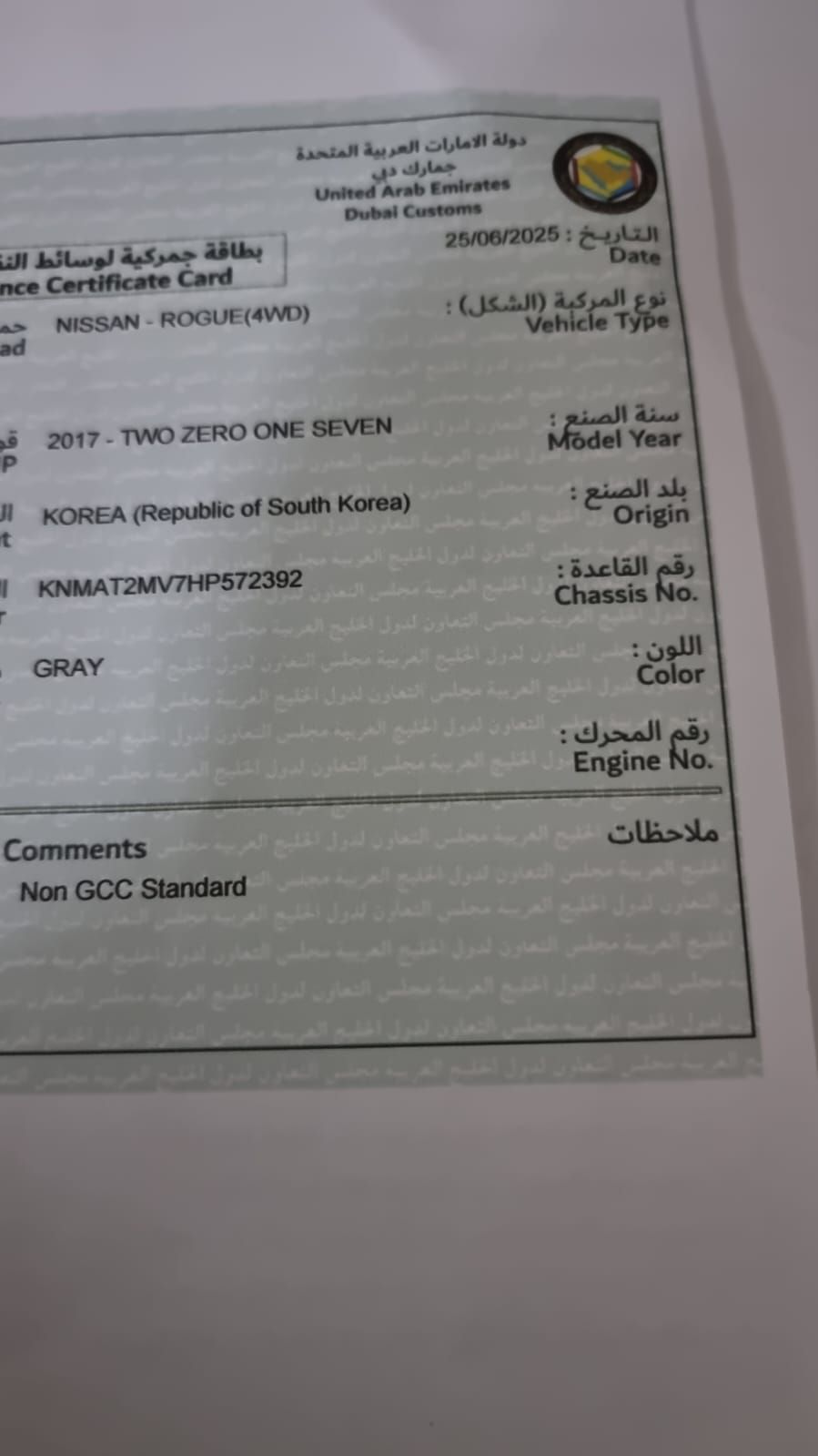 نيسان روج 2017 وارد أمريكا، بدون حوادث، خدوش بسيطة جداً، ايرباج وكالة، بطارية جديدة، ممشى 132,000 ميل، ماكينة، جير، شاسيه وكالة، أوراق جمرك متوفرة. المطلوب 23,500 درهم. موجودة في عجمان. للتواصل عبر واتساب أو اتصال.