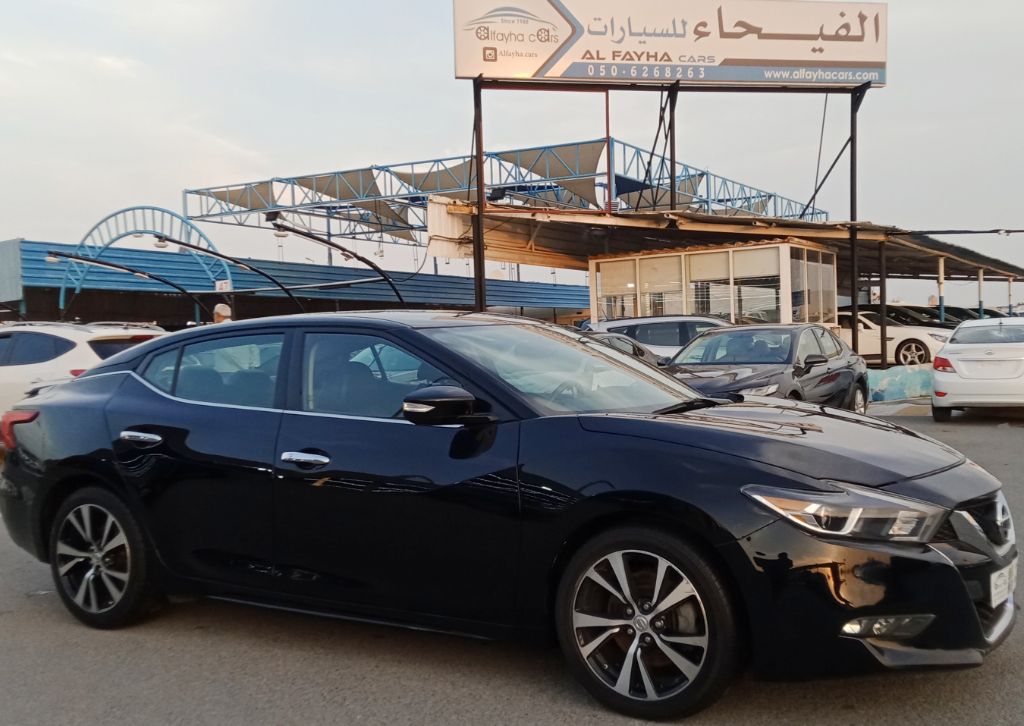 Nissan Maxima SV 6-cylinder 3.5L model 2018. Price: 33,000 AED. Odometer: 97,000 km. American specifications. Color: Black exterior / Black interior. Features: 12V socket - front only, steering wheel audio controls, automatic dimming mirror, automatic air conditioning, AUX input, Bluetooth, CD player, cruise control, keyless entry, leather gear shift knob, MP3, navigation system, speakers, trip meter, audio system.