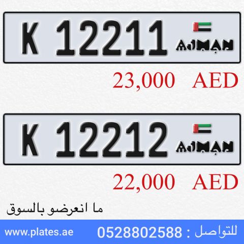 رقمين مميزين، للبيع عجمان كود K مزاد الامارات جاهز ومم لك