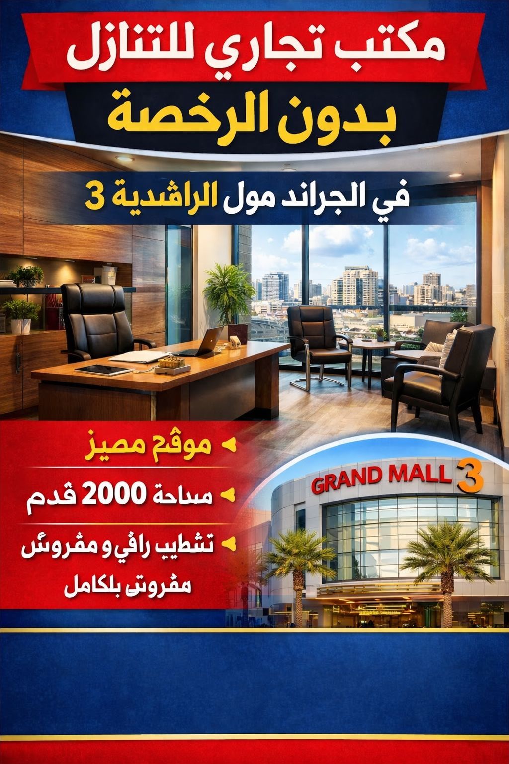 Ready - to - Operate Office for sale Excellent Opportunity for Business Owners Office for sale without a commercial license Ready to operate immediately Specifications Large area 2000 SqFt Fully finished with high - end decor Reception area