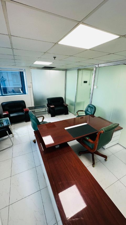Prime commercial office for annual rent in a strategic location on Ajman Corniche with a private entrance and direct sea view from the first row. The office features a very large area suitable for various commercial and administrative activities, with high - quality finishing that reflects a professional business image. The location is vibrant and considered one of the best commercial spots in Ajman