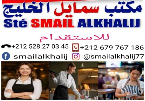 نحن شركة سمايل الخليج للتوظيف بدول الخليج نوفر لكم من المغرب مقدمات ومقدمين طعام / كاشيرات ومحاسبات / موظفات استقبال فنادق ومطاعم / مساعدات شيف / حلوانيات وطباخات / حلوانيين وشيف بيكيري / معلمين بيتزا وفطائر ومناقيش والخ / كل العمالة لها كفاءات ومهارات عالية للطلب أو الاستفسار يرجى التواصل معنا عبر أرقامنا