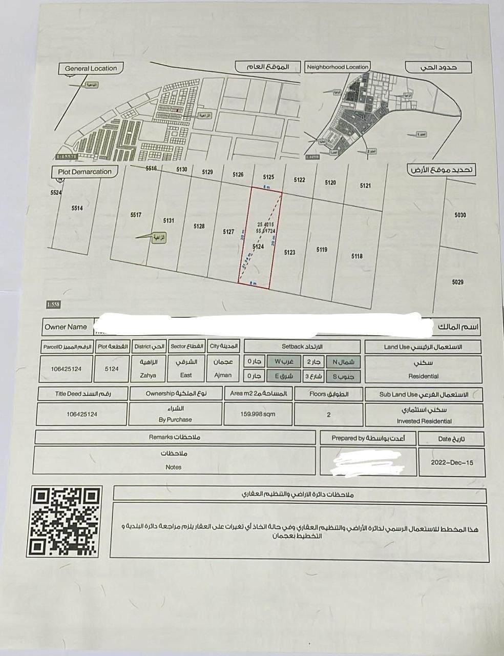 للبيع في الزاهية في عجمان قطعتين تاون هاوس متجاورات مساحة القطعة 160 متر تصريح بناء G 2 للتواصل