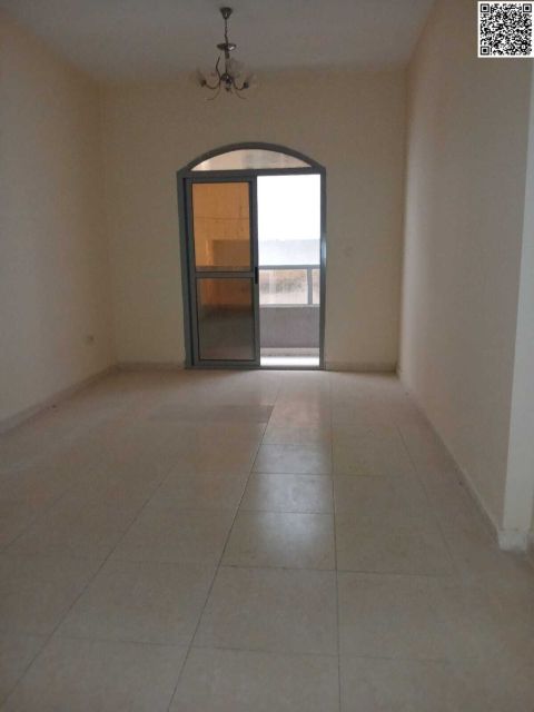 One bedroom and living room for annual rent in Ajman. One bathroom, balcony. Split AC. Water 3. Near Dubai exit. Price 30000