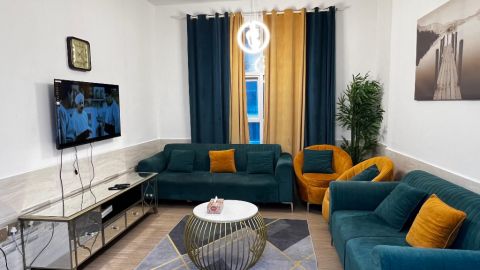 Two - bedroom apartment with a living room for annual rent in a new tower in Ajman, Rashidiya 1 area, extension of Khalifa Street. One of Ajman's most beautiful towers, featuring luxurious finishes, spaciousness, and decor, including built - in wardrobes, two bathrooms, a balcony, a gym, and a power access system. Excellent location in Ajman, Rashidiya 1 area, next to Gulf Tower and Gulf Bridge