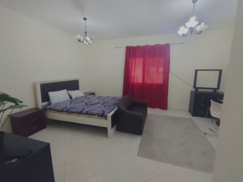 Monthly rent in Al Al Nuaimia, 2 furnished studios, separate kitchen, large area, price 2500, including bills, electricity, water, sewage, and internet, all services are available, excellent location, easy exit, Mohammed Bin Zayed City