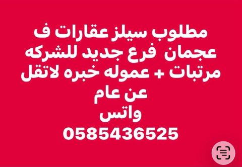 مطلوب سيلز عقارات في عجمان النخيل فرع جديد للشركة مرتبات + عمولة للتواصل