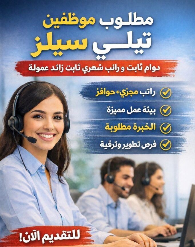 تعلن شركة مقرها عجمان الراشدية 1 بجوار الهورايزون عن احتياجها الى عدد من الموظفين شباب وبنات للعمل بوظيفة تلي سيلز بمرتب كويس وعمولة كويسه مع مميزات أخرى للتقدم الى الوظيفة ارسال أل CV الى