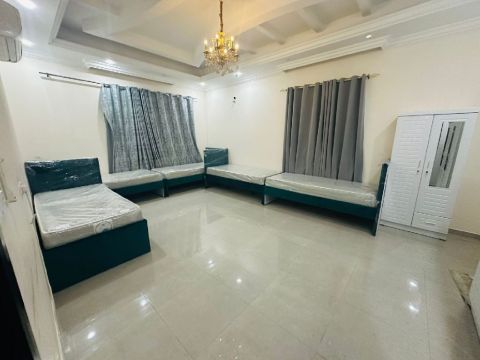 Available six - person room for AED600 in Rashidiya 3 on Khalifa Street, in a clean building located in a lively area near Grand Mall. For employees only, visitors are not allowed