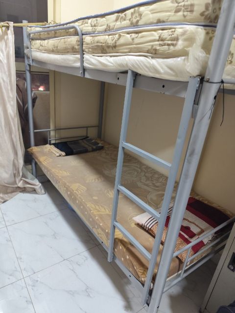 متاح سريرين في غرفة رباعيه بسعر 550 سنجل وغرفة خماسية بسعر 500 سنجل. سكن شباب هادئ ونظيف خلف جراند مول راشديه 3 وقريب من كل الخدمات