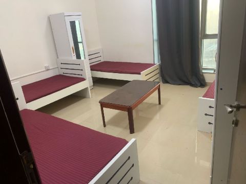 Available now for monthly rent in Ajman a room for 4 young men in a youth hostel in Al Al Nuaimia 3, next to City Tower. Includes a balcony and a refrigerator. Price AED2200 instead of AED2400
