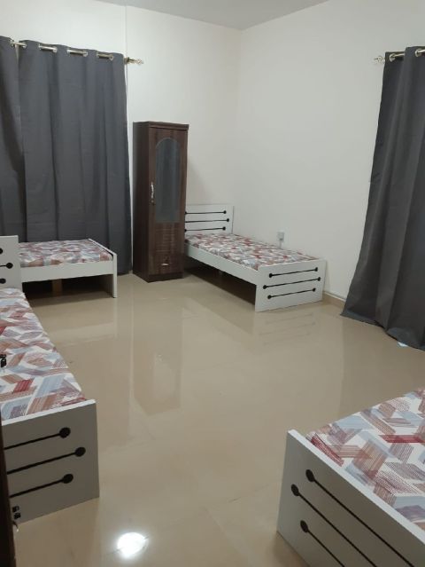 2 beds available for male employees at AED600 in a new apartment near Grand Mall. The apartment is clean, organized, quiet, and close to the bus stop