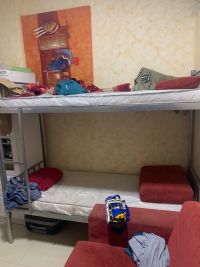 متاح سرير دبل من أول الشهر في الروضة 2 قريب شارع عمار وفلافل الرابيه بجوار جميع الخدمات، السعر 400 درهم شامل كهرباء وانترنت