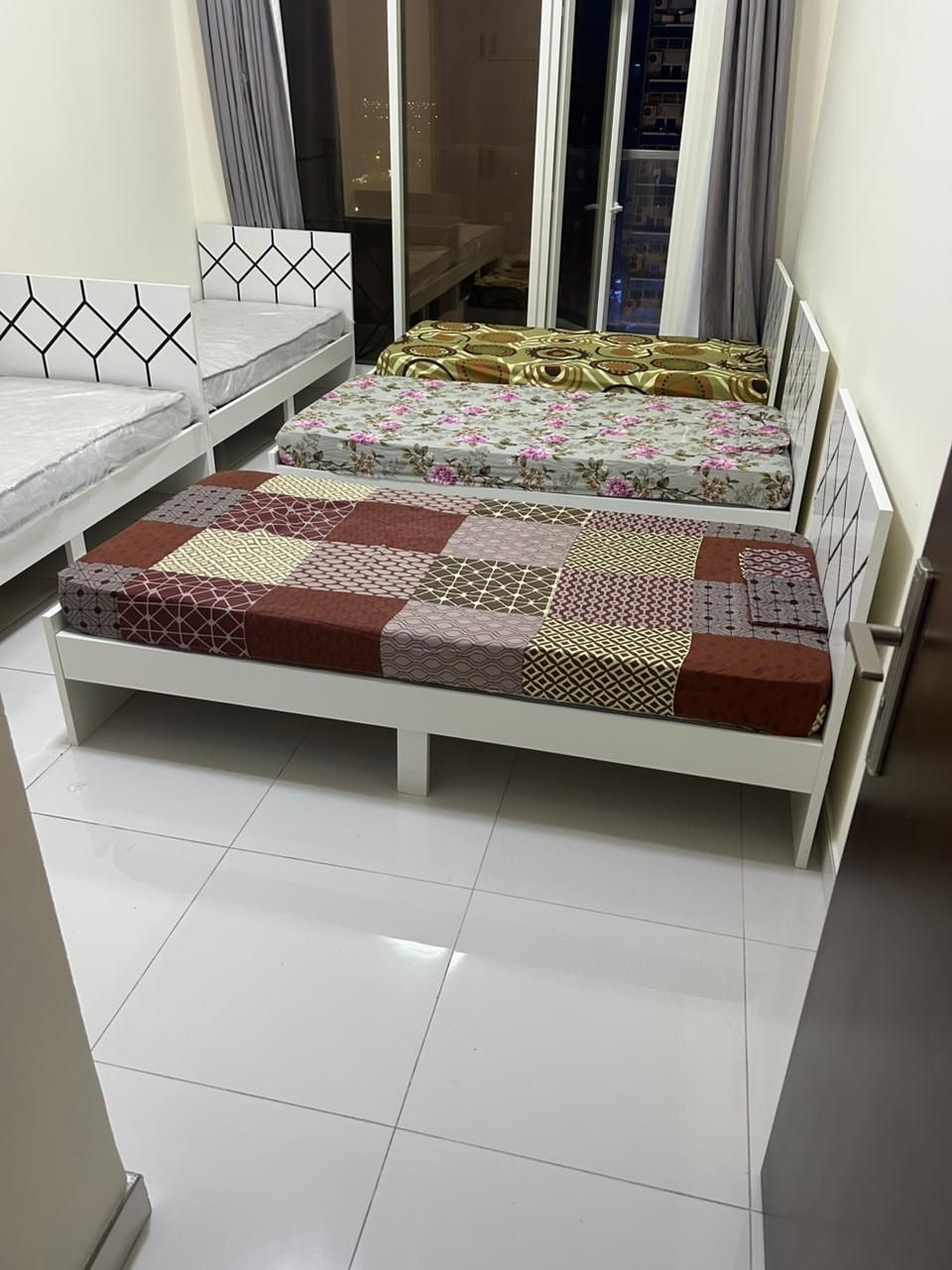 سرير بسكن شباب موظفين غرفة خماسية ببلكونه الخزانه في الحائط في الراشدية 3 بجوار جراند مول سعر السرير 700 درهم